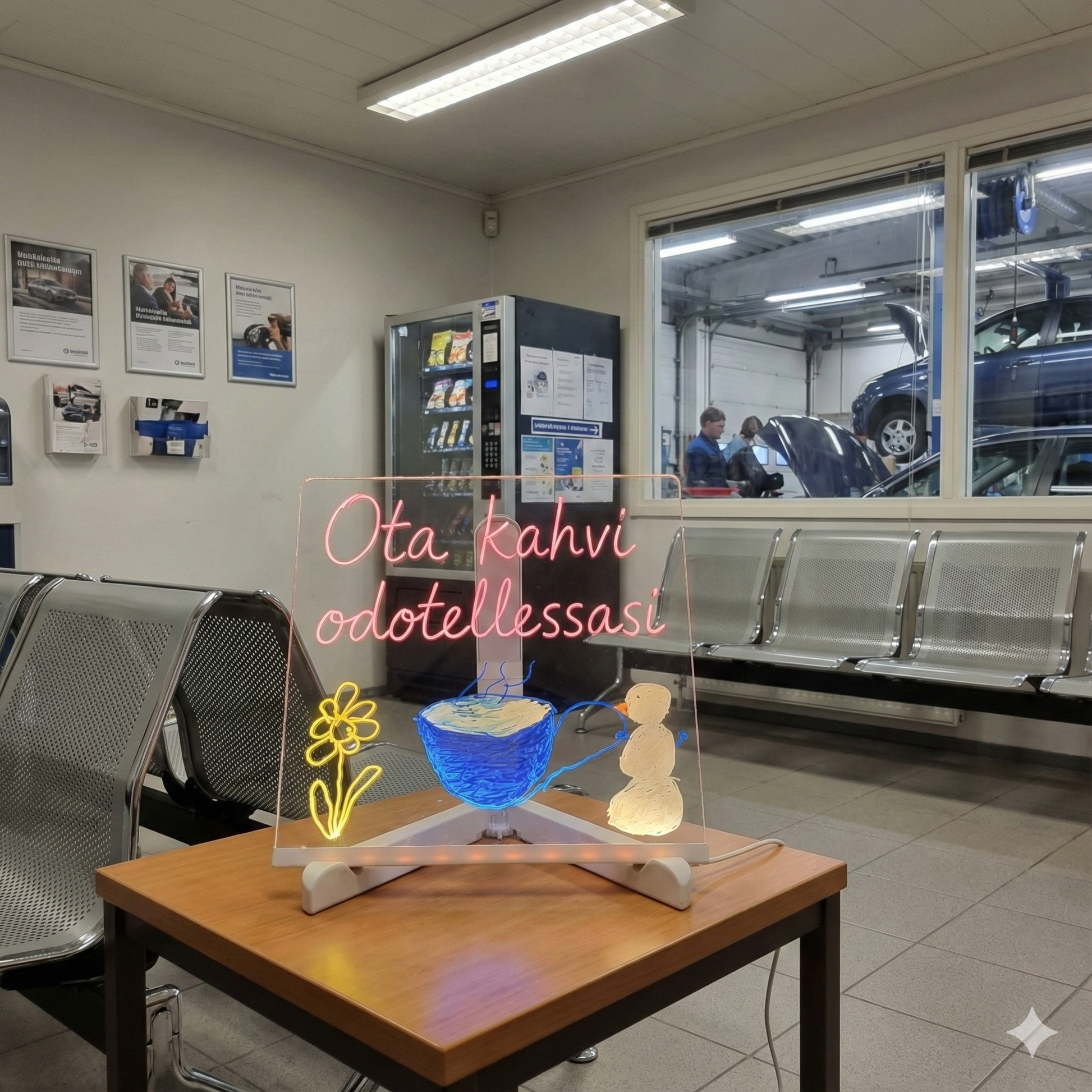 Tämä kyltti on suunniteltu yrityksille, jotka haluavat erottua edukseen ilman monimutkaisia asennuksia tai kalliita räätälöintejä. Pistoke seinään, valot päälle – ja yrityksesi nimi, logo tai viesti alkaa kirjaimellisesti loistaa.